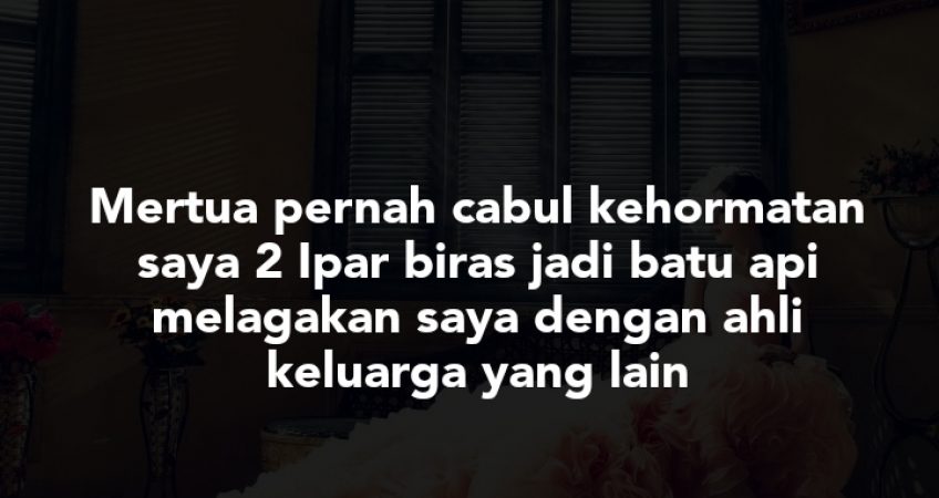 Saya sudah berumahtngga hampir 10 tahun dan mempunyai 3anak,,hubungan saya dengan keluarga suami(mertua dan ipar biras) tidak baik sejak 9 tahun lalu.sebab 1.Mertua pernah cabul kehormatan saya 2. Ipar biras jadi batu api melagakan saya dengan ahli keluarga yang lain,memutar belitkan cerita@fitnah saya mcm2 3. Mertua pnh cuba menghancurkan rmhtngga saya 4. Ipar biras pernah sumpah saya b*b* dan hina maruah saya. Dan disebabkan hal itu saya tak jejakkan lagi kaki ke rumah keluarga suami sampai saya dikurniakan 3 org anak pun diorang tak pernah bertanya khbar ataukenal dengan anak anak saya. 8 tahun yang lepas jugak hubungan saya dengan suami memang tak baik dan saya pernah failkan penceraian tapi perancangan allah itu lagi besar. Jodoh saya masih lagi dengan suami,