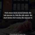 Aku tak marah suami aku..aku faham..anak tiri aku pun aku faham..ini majlis dia..mungkin dia nak mak dan ayah dia ade mase majlis tu..aku cuma mak tiri..Kadang2 aku terfikir sorang2 aku redha dan aku terima. sebab bagi aku majlis tu kejap je..aku boleh keluar dan pergi jalan2..shopping. Tapi kadang2 terfikir juga. perlu ke aku yang tuan rumah harus keluar dari rumah aku sendiri..