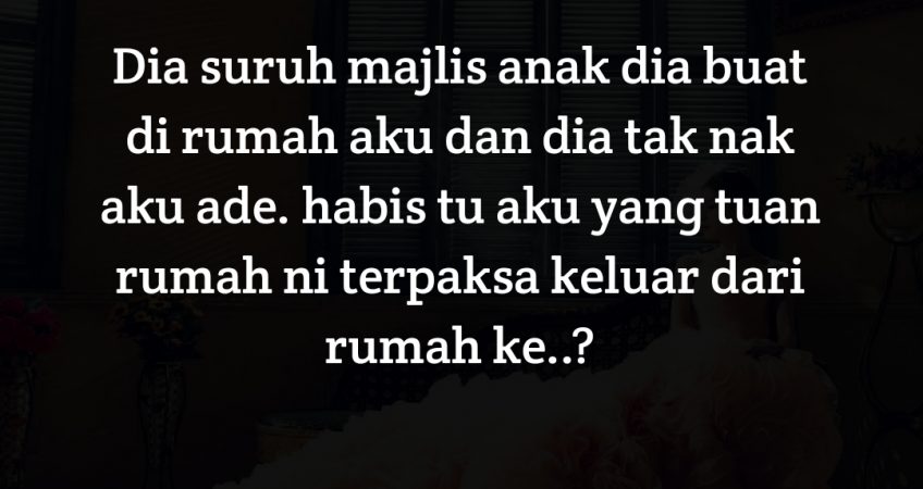 Okey..aku cuba faham dan aku tak nak timbulkan masalah aku terima. Yang ni paling aku sakit hati. nak sewa dewan mahal. Rumah ex wife dia pun besar. rumah suami aku pun takde besar sangat berbanding rumah dia. Dia suruh majlis anak dia buat di rumah aku dan dia tak nak aku ade. habis tu aku yang tuan rumah ni terpaksa keluar dari rumah ke..?