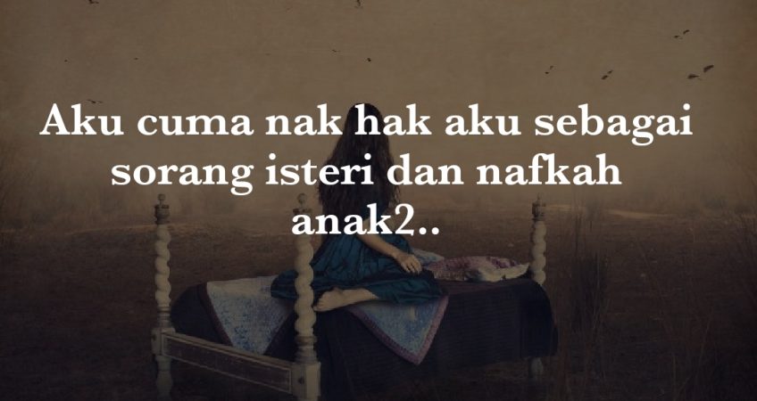Salam.. hari ni adalah hari yg paling sedih kecewa..apa dosa aku yg selama ni berkerje 12 jam sehari.. penat2 balik keje tegur suami supaya keje tetap.. tapi makui hamun yang di bagi, Aku cuma nak hak aku sebagai sorang isteri dan nafkah anak2.. bulan depan genap anak aku 1 tahun sikap suami tak penah berubah dari anak aku dalam perut semua aku yang tanggung..