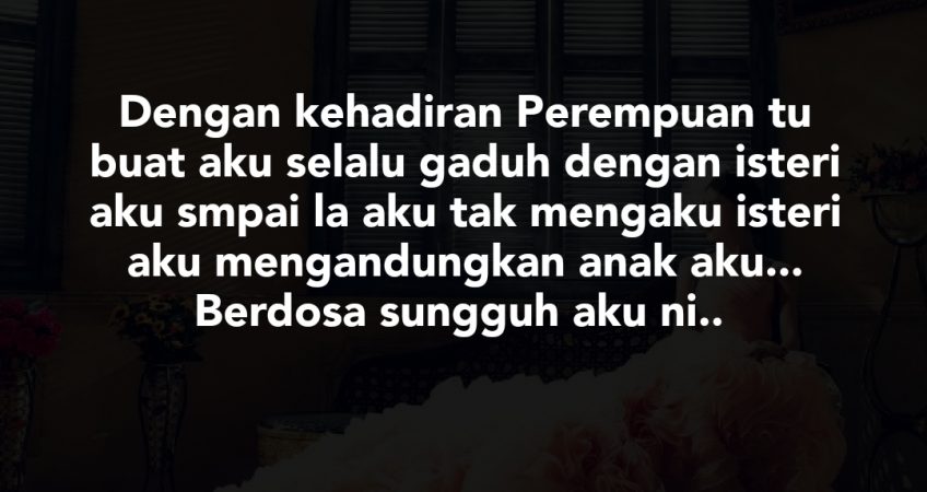 Tahun 2017: Aku dah ada anak 2 perempuan tu sibuk muncul balik dalam hidup aku dan cuba tarik perhatian aku sampai la aku dah terjatuh hati kat dia sebab lembut dan caring sangat.. Perempuan tu tak kahwin lagi walaupun usia dah nak ke 4 series.. Dengan kehadiran Perempuan tu buat aku selalu gaduh dengan isteri aku smpai la aku tak mengaku isteri aku mengandungkan anak aku… Berdosa sungguh aku ni..