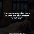 Dia cakap ” kau duduk rumah je pun bukan pergi kerja macam aku.. ” habis tu ..anak-anak sapa yang jaga dekat rumah kalau bukan aku.. Sapa yang masak,kemas rumah masak,segalanya dalam rumah aku yang uruskan. ya memang aku cepat letih dan aku akan baring terkadang aku terlelap waktu siang.. Itupun bila anak-anak dah tido.. Baru aku tido. Kadang dia balik pun aku tak sedar sebab keletihan rutin harian.. Tapi dah masak semua siap.. Kerja dia selama ni cuma keluar kerja, balik kerja, makan, lepak main game atau berfesbuk, jam 8-9 malam keluar lepak dengan kawan-kawan.. Aku dan anak-anak.. Di tinggal..balik jam 12pagi kadang 1pagi..