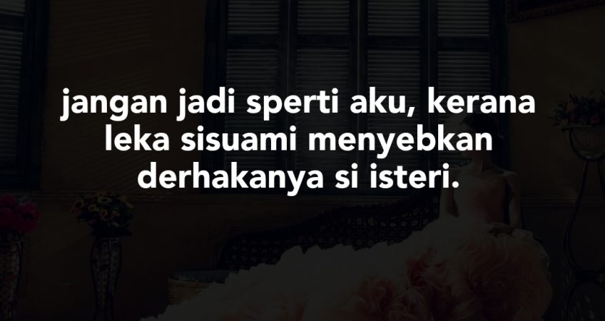 Sekarang aku nak minta putuskan hubungan aku brsama kekasih gelapku INI. Sudan berapa Kali aku minta putus, tetapii kekasihku tak mahu aku dan aku juga sayang padanya. tapi apa boleh aku buat. aku sayang suami aku juga, aku cinta suami aku, dia yang terbaik yang aku ada. wahai suami2 diluar Sana,hargailah isterimu didepan Mata yamg menunggu mu saat kamu pulang, jangan jadi sperti aku, kerana leka sisuami menyebkan derhakanya si isteri.