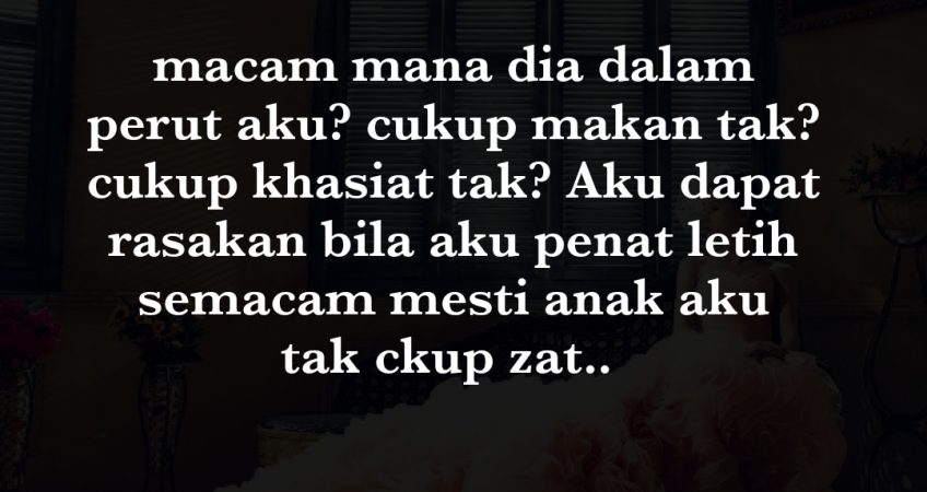 Azab betul aku rasa. hari2 menangis sorang2 tak nak situasi ni, aku sedih bukan sebab diri aku, sebab anak dalam perut aku. macam mana dia dalam perut aku? cukup makan tak? cukup khasiat tak? Aku dapat rasakan bila aku penat letih semacam mesti anak aku tak ckup zat.. Doakan lah baby dalam perut aku ni sihat2 smpai dia keluar dan harap aku kuatlah semangat dengan dugaan macam nii. Insyallah.. tq admin..