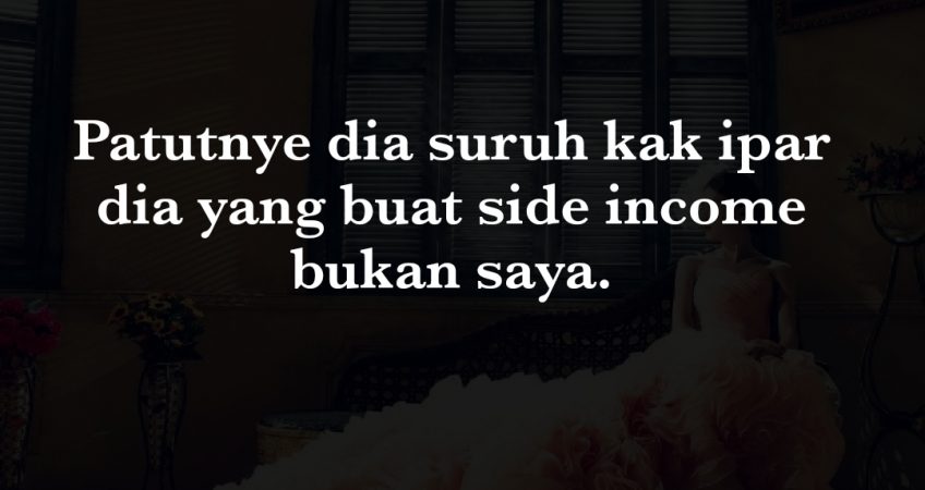 Salam min.. Tq siarkan persoalan saya… Hide profile ye min.. Saya tak ade masalah rumahtangga pun.. Alhamdulillah setakat ni Gaduh sikit2 tu biasa la kan lumrah yang jadi masalah saya suami selalu desak saya cari side income macam niaga online ke, bukan tak nak buat tapi alhamdulillah gaji suami cukup tampung kami anak beranak.. tapi tiap masa suruh saya cari side income, boleh saving2 katanye ble ada side income saya ni masa kadang2 trkejar2 urus anak, pagi2 hantar anak g sek men, ren dan tabika.. Hntr si abang dan si kakakbalik dari hntr diaorg siap2kan si adik pula sdh hntr anak g pasar pastu blk kemas2 rmh dan memasak..