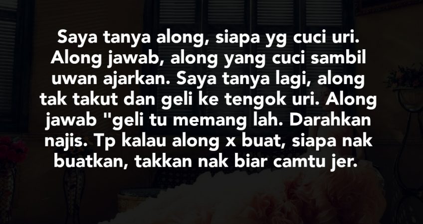 Saya tanya along, siapa yg cuci uri. Along jawab, along yang cuci sambil uwan ajarkan. Saya tanya lagi, along x takut dan geli ke tengok uri. Along jawab