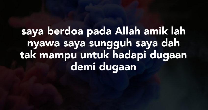 Assalam semua sahabat. Terima kasih admin siarkan kisah saya. Saya nak tanya sahabat kenape Allah tak makbulkn doa kita? saya berdoa pada Allah amik lah nyawa saya sungguh saya dah tak mampu untuk hadapi dugaan demi dugaan.. nasib semua orang tak sama, jika dapat suami terbaik mereka antara isteri yang bertuah. berbelas tahun perkahwinan saya suami seakan menggangap saya smpah semata2.