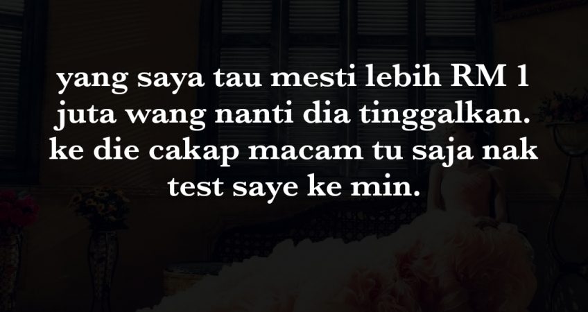 Time die sakit kita jaga die. basuh berak die. tapi kalau dah die cakap macam tu macam tak anggap dah kita ni seorang istri. Anak sorang pun tak nak masukkn waris. yang saya tau mesti lebih RM 1 juta wang nanti dia tinggalkan. ke die cakap macam tu saja nak test saye ke min. pasal sekarang die tengah sakit. Saye nak pikir positif je. ikhlas je jaga die nie. Terpulang la nanti die nak hibah sikit hartanya untuk saya ke tak. Biar Allah yg membalasnya dengan rezeki yg lebih banyak kat saya. walau dari arah lain.