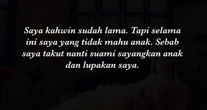 Salam admin. Saya hendak cerita tentang tahap kegilaan saya. Tolong hide akaun saya admin. Saya kahwin sudah lama. Tapi selama ini saya yang tidak mahu anak. Sebab saya takut nanti suami sayangkan anak dan lupakan saya. Sekarang saya sudah ada anak. Tapi saya tidak bagi suami pegang. Bila suami pegang saya akan menangis.