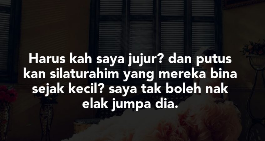 soalan dia… harus kah saya jujur?? dan putus kan silaturahim yg mereka bina sejak kecil?? saya tak boleh nak elak jumpa dia. kdg2 suami yang ajak dia dtg rumah