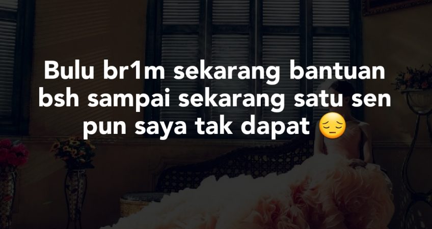 Assalamualaikum admin, dulu br1m sekarang bantuan bsh sampai sekarang satu sen pun saya tak dapat sampai kn suami saya cerita dkt orang tiap2 hari bagi saya duit satu sen pun tak ade baru ni bantuan bsh tak masuk dalam akaun dia ckp ape tunggu dalam peroses sampai tu jg lh perg cek dekat banak duit tak masuk sampai suami saya bising ape lh kerajan apa salah masuk dalam akaun suami menyusah kn orang je nak pergi banak, bila dah beli baju anak2 nak makan kfc dia bising duit tak cukup nak bayar yuran anak yang sulung nasib lh dapat juga makan kfc walaupun 5 ketul sekali sekala bukan makan selalu.