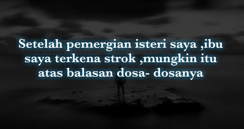 Setelah 2 bulan bertarung nyawa ,isteri saya pergi menemui pencipta , sebelum dia pergi , dia meminta maaf sebab tak dapat menjaga saya lagi , saya kata tak apa , tiada apa² untuk dimaafkan , kerana dia tiada dosa selama ini ,dia sdh menjalankan tanggungjawabnya dgn baik , dia pergi dgn tenang disisi saya dan mertua . Setelah pemergian isteri saya ,ibu saya terkena strok ,mungkin itu atas balasan dosa- dosanya ,tapi saya telah memaafkan ibu ,sebab dia tetap ibu saya, saya dan ayah lah juga yang menjaga dia , adik dah balik ,dia lah yang mandikan ibu ,ibu terkena strok dan lumpuh sebelah badan ,dia juga tidak mampu bertutur dgn baik . Betullah setiap perbuatan kita ada balasannya , semoga sayang tenang disana , abang selalu doakan sayang , tempatkan disisi orang² yang beriman , al- fatihah buat sayang . Terima kasih admin ,assalamualaikum