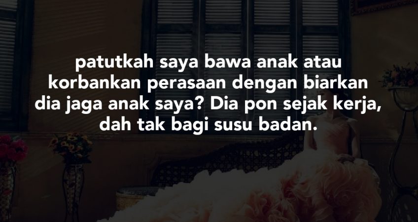 Saya nak bawa anak saya. Cumanya ntahlah, patutkah saya bawa atau korbankan perasaan dengan biarkan dia jaga anak saya? Dia pon sejak kerja, dah tak bagi susu badan. Hari hari suruh nursery jaga. At least kalau saya di Bangkok, saya jd top management. Semua akan diberikan. So soalan saya, patut tak saya bawa anak perempuan saya tu?