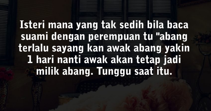 Sekarang mereka dah jarang berhubung sebab saya jadi semakin agresif tentang hal ini. Pantang suami saya tengokn hp saya akan ungkit hal ini dan kami akan bertengkar, tapi tak guna juga sebab semalam suami lupa padam yang dia call prempuan tu masa keluar ke kedai.sejak saya balik suami cuma call perempuan tu bila ada kesempatan atas dasar janji dan rindu. 12 tahun suami saya tetap pegang pada janji, bertuah sungguh perempuan itu apa pun yang suami cakap atau janji semua suami saya tunai dan tepati. Isteri mana yang tak sedih bila baca suami dengan perempuan tu “abang terlalu sayang kan awak abang yakin 1 hari nanti awak akan tetap jadi milik abang. Tunggu saat itu.
