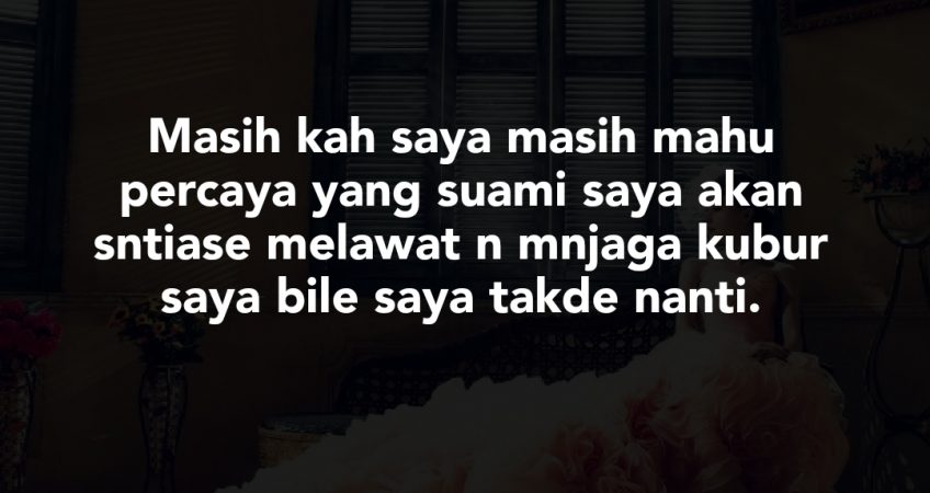 Yang nak di jadikn cerita. tetibe2 saya teringt arwah kakak suami yang dh pergi kira2 20 thun lpas. Sepanjng saya khwin saya tak pernh nmpk n tahu bile kli terakhir suami pergi mlawat kubur kakak nyer… jadi saya pun tnyer. awak tak nak g kubur arwah kakak ker?? Bersih2kn kubur arwah kakak ker. kan darh daging awak tu. suami jwab trgagap2 nnti kite g eh…