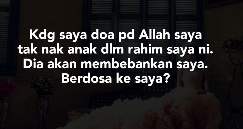 Kdg saya doa pd Allah saya tak nak anak dlm rahim saya ni. Dia akan membebankan saya. Berdosa ke saya ?dia hari hari merayu menangis pujuk saya ,dia mengaku tu silap masa lalu dia. Dia cakap dia dah bertaubat.. dia memang dari dulu lg tak pernah tinggal solat, perlu ke saya percayakan suami saya lagi? Perlu ke saya teruskan hbgn saya dgn dia.. walaupan hati saya tersangat kecewa. Bantu saya.