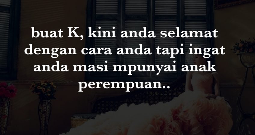 salam min. saya nak luahkan apa yang terjadi dalam hidup saya saat ini. tolong siarkan ya min. tak perlu la saya ceritakn secara details macam mana saya berkenalan dengan lelaki bernama K, saya singkatkn K suda brkahwin dan mempunyai seorang anak, tetapi di sebabkn bini K selalu keluar malam dan megabaikan tnggungjeb sebagai istri makanya saya yang kesian menerima K dan berharap akan dapst meringankan beban K