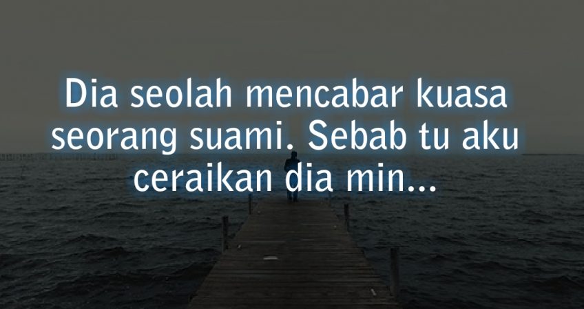 Aku dah warning dia banyak kali sebelum aku ceraikan dia. Aku faham wanita kan emosi tak stabil bila lepas lahirkan anak Tapi dia seolah mencabar kuasa seorang suami. Sebab tu aku ceraikan dia min.