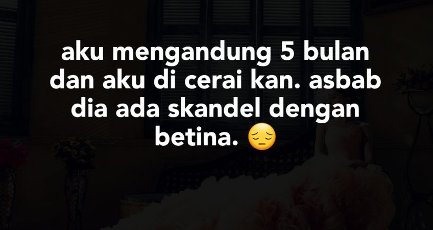 pengalaman aku min. aku mengandung 5 bulan dan aku di cerai kan. asbab dia ada skandel dengan betine. dia nak kluo dgn betine tu. Dia mintak aku iron kan baju sluo dia Allah tu maha adil saat aku tengah iron baju dia, dia mandi betine tu call aku yang angkat dan dia sebut nama laki aku masa tu aku cakap dia mandi…