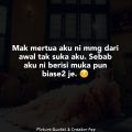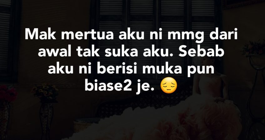 Assalamualaikum min tolong hide profile aku ya. Aku nak tanya pendapat warga krt apa nk di buat dengan mak mertua yg mcm nk runtuhkan rumah tangga anak dengan menantu sendiri. Aku nak cerita dari awal macam panjang sangat. Aku belum sampai setahun lagi berkahwin. Tapi dah berkawan dengan laki aku sebelum kahwin dah 5 tahun. Mak mertua aku ni mmg dari awal tak suka aku. Sebab aku ni berisi muka pun biase2 je. Tapi tak de lah sampai tak reti bergaya langsung. Aku pun kdg ade jugak cuba berhias.