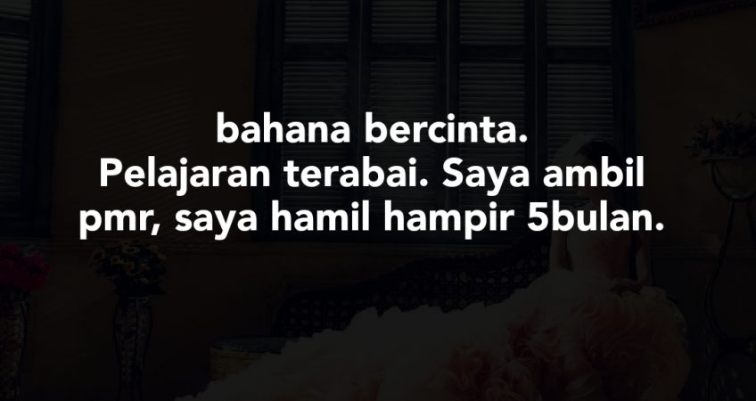 Pelajaran terabai. Saya ambil pmr, saya hamil hampir 5bulan. Perut kecil siapa pun tak perasan. Hati seorang mak, dia dapat hidu. Tapi saya nafikan.