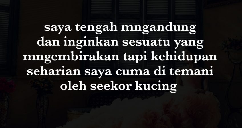 Dulu sebelom berkahwin saya sentiasa gembira dan tidak ksunyian kemana mana sahaja saya boleh pergi dan membuat aktivity bersama sama kawan perempuan. tapi selepas berkahwin saya pun mula dusuruh suami berhenti bekerja dan di sebabkan itulah kehidupan saya sangat sunyi kerana kluarga makciknya jarang skli ingin berbual dengan saya. saya tahu bahawa makciknya memang tidak mnyukai saya apabila saya mengetahui bahawa makciknya bergosip tentang saya dengan mertua yang lain iaitu saudara mara terdekat suami. saya tengah mngandung dan inginkan sesuatu yang mngembirakan tapi kehidupan seharian saya cuma di temani oleh seekor kucing sahaja apabila suami sedang bekerja.