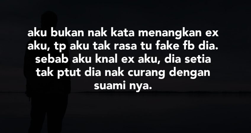 Bukan nak aibkan dia tapi tu la asyik rasa ex aku tuk nak sond0l aku balik jer lepas tu paksa aku blok fb tu. Dulu aku bagi tau kat dia ex aku tak pandai masak tapi sebenarnya aku tipu sekarang asal gaduh je dia cakap aku nak balik kat prempuan tak tahu masak tu.. kalau lah dia tahu aku tipu sebab nak tackle dia je, apa agaknya dia buat. aku bukan nak kata menangkan ex aku, tp aku tak rasa tu fake fb dia. sebab aku knal ex aku, dia setia tak ptut dia nak curang dengan suami nya.. lagipun tak ada bukti.. muka pun lain kat fb.. isteri aku tu jer yg rasa insecure. topik ni la slu buat kami gaduh. aku dh suroh dia blok fb tu kalau rasa tak slamat tapi perempuan kan.. dia taknak. dia mesti tahu stiap perkembangan fb tu.. tp yang jadi mangsa nya aku.