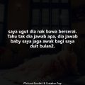 Sekarang dh 5tahun saya menjanda, bkn takde hati nk cari pengganti tapi saya dh serik ,baik saya hidup mcm ni dengan anak2, skrg saya dh mampu bli rumah wlaupn kecik, kereta baru wlaupn tak mewah dengan hasil jual kuih, baru2 ni ex ada dtg jumpa anak2 yang dh bertahun tak jengah, katanya nk blk pd saya sbb kesian kn anak2, bertahun tak jengah, nafkah 1sen tak prnh bagi, dh nmpk kami hidup senang baru nk kesian kn anak, memang takde la saya lyn, saya ckp anak aku cukup bhagia cukup sgala2 wlaupn takde ayh n anak aku tak perlukn ayh mcm kau, dia blk dengan menangis simpati, selang Brape ari dia dtg lg dengan mak die merayu bagai nk gila, Dr dlm rmh saya sound pegi berambus la aku tak kenal kau sape, trs aku tutup pintu.