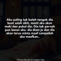 Aku nk smua dipertangggungjawabkan kt akhirat.. aku tak knmaafkan jgk keluarga dia.. yang sengaja nk susahkan hidup aku. dan semua ketidak adilan keluarga dia kt laki aku..sbb makayah dia hanya berani tegur dan marah laki aku je. anak2 prempuan dan anak laki lain..mak ayah dia takut.. buat salah pun mak ayah dia tak kan tegur.. lawak kan? pdhl anak laki dia sorang ni je la yang kerja dna pelajaran plg bagus..makayah dia tak pernah berjasa sgt pun.. cuma skadar besarkan anak je. tu pun dihantar skolah asrama dari umur 13..mkan free je di skolah. aku pun beranak kan orang jugak, tidak la aku rase jasa aku besar sgt. sbb aku yang pilih nk beranak.. anak tu tak lahir bukan dia yang pilih kita..anak pun kalau boleh pilih nk lahir dari Raja.