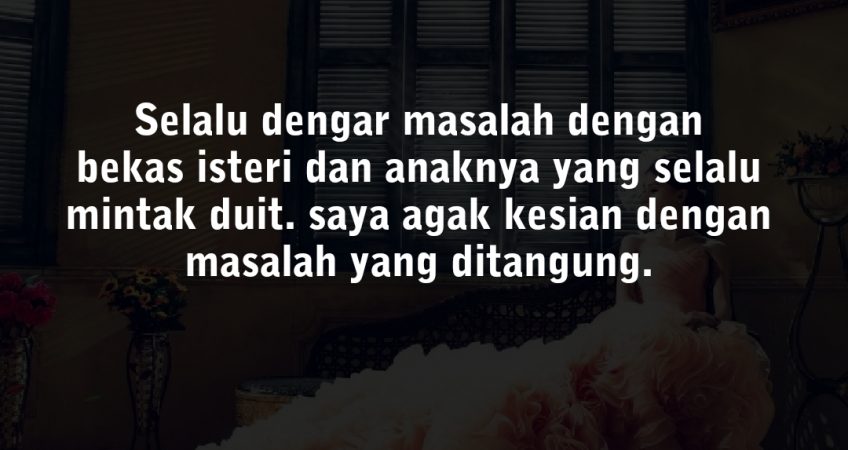 Hingga la semalam bekas isteri kol tanye tentang kwsp suami meninggikn suara sehingga menangis siksanya aku dengar dari mulut die saya sendri tak tahu apa nak buat