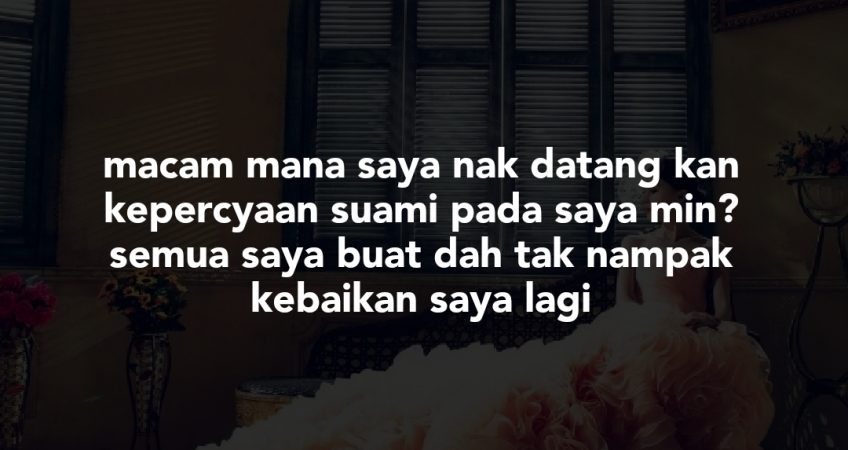 Tapi macam mana saya nak datang kan kepercyaan suami pada saya min? semua saya buat dah tak nampak kebaikan saya lagi. Hanya kesalahan je min. Walaupun kecil. Bila kami gaduh, suami akan puji skandal die dulu yang pandai amik hati die. Saya sedih sangat min. Adakah ini balasan atas segala kesalahan saya pada suami? Suami saya sangat2 baik min.