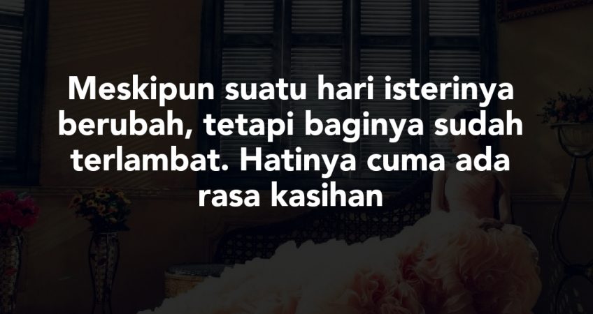 Meskipun suatu hari isterinya berubah, tetapi baginya sudah terlambat. Hatinya cuma ada rasa kasihan. Rasa cinta dan sayang sudah pudar. N terpaksa hidup berpura pura didalam rumahtangganya. Tidak pasti jalan pengakhiran kami. Kami hanya berserah kepada takdir. Maaf semua…Sekian