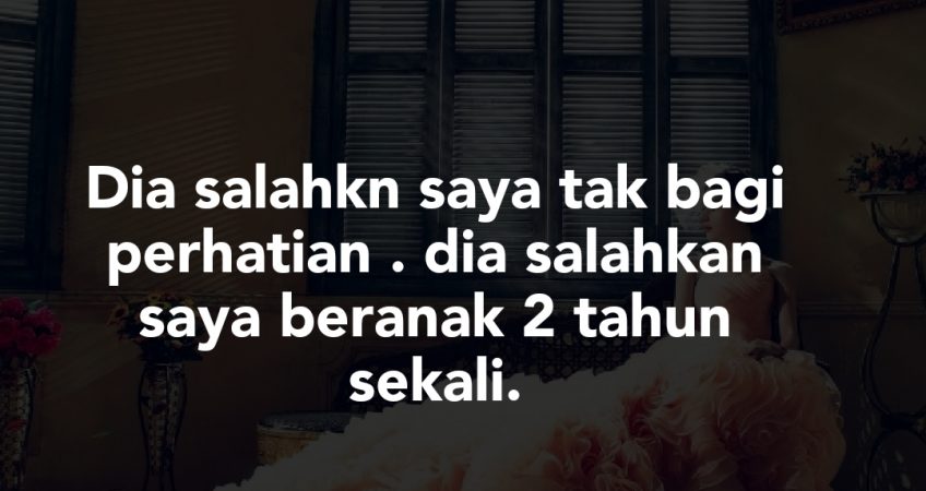 Masalah kedua muncul bila dia bersayng2 dengan rakan sekerja yang bujang. kami pjj masa tu. rupanyaaa diorang bersayang2 kt sana.. saya hanya tahu selepas lahirkan ank kedua Kami. Saya menagis2 dan dia taktahu yang saya tahu..saya contact budak tu can warning dia.. memang diorang dah stop lama dah sebab budak tu nk kawin. Dan muncul lagi bila saya lagirkan. anak ke3. bersayang2 pula dengan kerani tempat kerja. Allahuu.. saya rasa nk tampar budak tu. saya jumpa dia. menamgis2 budak tu minta maaf… suami masih taktahu lagi saya dah bersihkan taik2 dia.