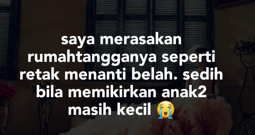Maaflah kalau terlalu panjang lebar . Semakin lama saya dh rasa mls dh nk bersembang ke apa..kadang2 dia tanya apa2 sy buat tak tahu je. malas dah nak bercakap nak apa. paling sedih bangun tengah malam tengok dia tdo kat lua. Depan tv. atau sebelah anak2. Tak pernah nak tdo sebelah saya. peluk jauh skali tak taw bila last tdo peluk bertahun lamanya dah xingat. walaupon sebelah saya kosong, walaupon saya pernah ajak tdo sebelah. hati saya sedih sebak benci semua ada. saya merasakan rumahtangganya seperti retak menanti belah. sedih bila memikirkan anak2 masih kecil. Hilang rasa cinta..yg ada rasa benci tetapi memikirkan anak2 sy sebak dan dilema.