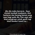 macam macam tuduhan dia buat pada saya dalam facebook. Dia sudah tua tapi masih tak sedar diri lagi nak kawin sama jugak dengan janda ada anak .. setiap hari dia sebut marah saya dia kata saya halang dia nak kwin lain. saya tak halang.. tapi anak yang halang tak suka dia kawin lagi.. konon dia ni mampu lah .. tapi manusia yang ada dalan rumah ni pun tak makan mewah .. makan pun apa yang ada saja , kadang makan nasi dengan ikan masin saja , kadang nasi dengan sayur saja.