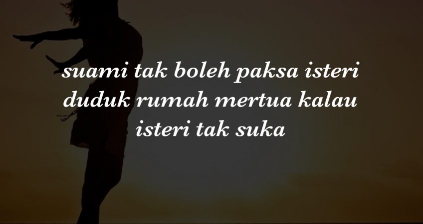 Lepas dari tu saya tengok ceramah ustaz ustaz pasal mak mertua, ustaz tu cakap suami tak boleh paksa isteri duduk rumah mertua kalau isteri tak suka sebab perangai mertua yang tak elok. lepastu ustaz tu cakap cuba suami di tempat isteri, kena hadap muka orang yang kita tak suka seharian. apa akan jadi? jadinya kena elakkan dari apa yg kita tak nak benda tu jadi.