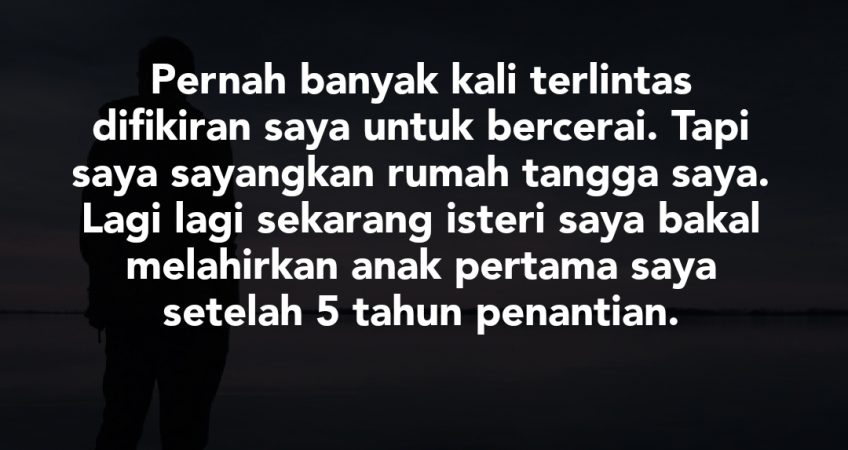 Pernah banyak kali terlintas difikiran saya untuk bercerai. Tapi saya sayangkan rumah tangga saya. Lagi lagi sekarang isteri saya bakal melahirkan anak pertama saya setelah 5 tahun penantian. Apa yang bakal berlaku bila saya bercerai? Apa nasib anak saya. Tak siapa yang tahu perkara ni melainkan saya, isteri dan keluarga isteri saya. Saya dah tak tahu cara untuk menasihati isteri saya. Sedangkan keluarganya pun turut menggelakkan keluarga saya. Agaknya memang cara isteri saya dibesarkan jarang dinasihati, dimarahi, kurang penekanan tentang adab terhadap orang tua dan suami. Sebelum berkahwin, semuanya indah.