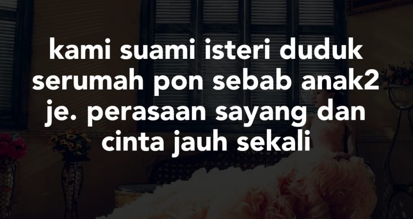 Assalamualaikum.. admin juga pembaca KRT. Tolong hide profile saya ye. Saya dan suami duduk satu rumah dan masih sah bergelar suami isteri..kami duduk serumah pon sebab anak2 je. perasaan sayang dan cinta jauh sekali. saya mahu pon suami sedia maklum yang kami memang tak ade perasaan antara satu sama lain iaitu hati daa masing2 tawar… Hal remeh pon nak gaduh.