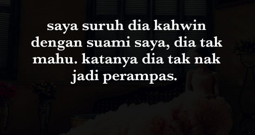 Suami saya pernah luah perasaan dia mula sayangkan S, sebab bila berbual dengan S, hidupnya tenang, seronok. S pula masakan tiada hati pada suami, jika tidak, dia tak kan melayan suami saya. pernah sekali berlaku pertengkaran besar, sehingga saya suruh suami ceraikan saya dan kahwin dengan S. buat apa simpan saya, jika saya dah tiada dihati. Tapi S ni pula datang merayu, supaya suami tak ceraikan saya, suami saya bagitahu S ni selalu nasihatkan dia ingat pada Allah, ingat pada rumahtangga. Tapi. Yang saya hairan. kenapa S begitu ligat melayan suami saya? apa yang dia nak sebenarnya? saya suruh dia kahwin dengan suami saya, dia tak mahu. katanya dia tak nak jadi perampas.