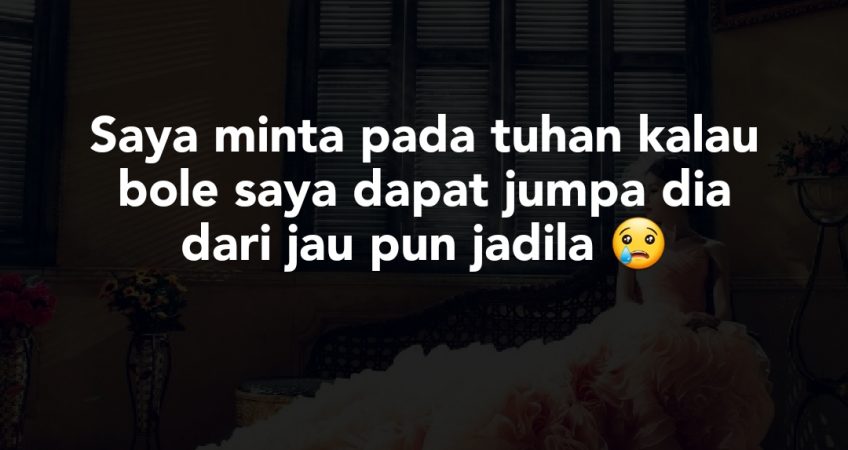 Saya minta pada tuhan kalau bole saya dapat jumpa dia dari jau pun jdila.. saya nak sangat tau kehidupan dia macam mana tempat saya… tapi sampai sekarang tuhan tak pernah pertemukan kami padahal kami tak jau mana pun tinggl.. bukan sekmpung tapi 1 pekan… takkn sesat punya kalau orang baru msuk pekan kami… tapi kenapa kami susah nak di pertemukan.. atau ini mainaan sya*tan.. saya tak tau lgi macam mana lupakan dia.. kalau laa admin bole bgi saya sedikit nasihat ke.
