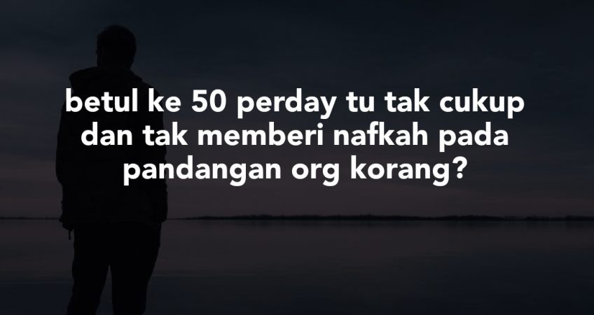 Duit rumah, bil api air dan belanja dapur semua saya bayarkan.. kete mtr semua saya dh habis bayar.. cuma blm ada rezeki nak beli rumah sendiri.. tapi masih mampu menyewa tanpa menumpang dengan mana2 ahli keluarga. persoalan saya disini, betul ke 50 perday tu tak cukup dan tak memberi nafkah pada pandangan org korang?
