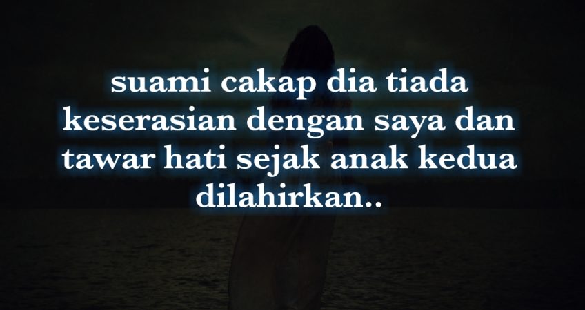 salam. saya tengah menghadapi masalah rumah tangga. tak tau la adakah rumah tangga kami ni boleh diselamatkan lagi atau tidak. suami cakap dia tiada keserasian dengan saya dan tawar hati sejak anak kedua dilahirkan (kini hampir masuk 2 tahun)