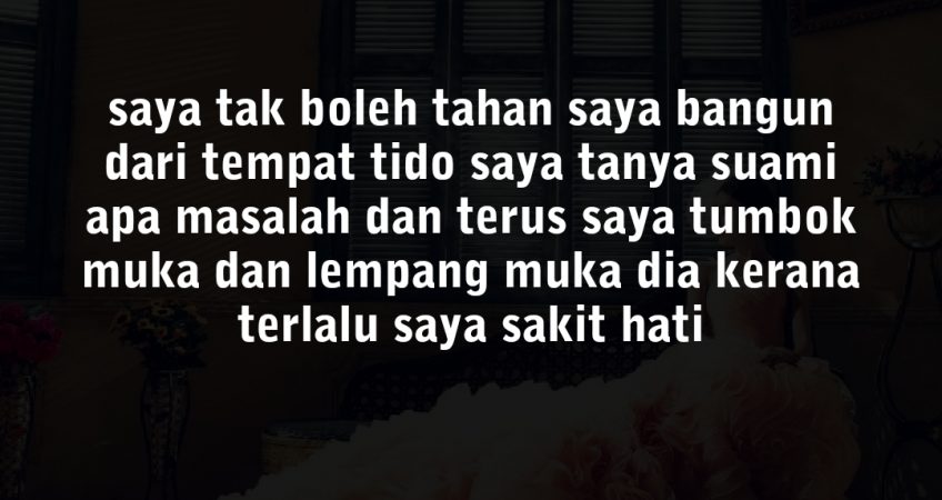 Buat pengetahuan semua kalo ank saya sakit masuk hospital tak pernah sekali pun suami dtg tengok. kalo keluar wad pun pandai2 saya cri kenderaan. bila dia kata saya ibu yang tak tangungjawab terus dar*h saya naik.. saya penat saya kerja aank setahun satu saya kemas umah memasak hantar ank pg umah pengasuh badan dan emosi saya terlalu tertekan sangt Malam yg saya gaduh tu suami saya keluar dari umah sampai hari ni tak balik2 lagi. saya minta pendapat nasihat tuk dri saya apa kah yg harus saya buat dlam hidup saya?saya sayang suami saya tapi kenapa dia selalu buat saya sedih saya kerja bantu dia demi kelurga saya. saya mak nak ank dia sakit kan…ya allah bantulah saya dlam selasai maslah rumah tngga sya apa yg patut saya jalani sekarang. saya buntu. Terasa ingin bunuh diri