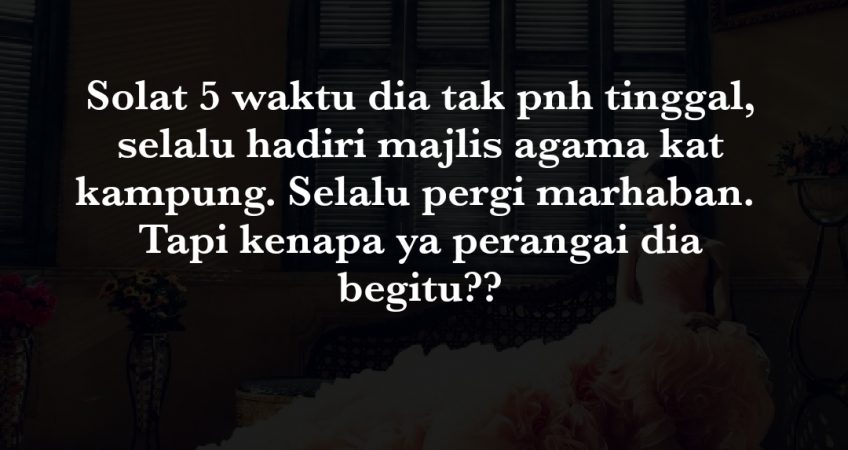 Mak mertua saya ni suka buka aib menantu dan canang. Saya bkn nk kutuk tapi mak mertua saya ni seorang yang warak tau. Solat 5 waktu dia tak pnh tinggal, selalu hadiri majlis agama kat kampung. Selalu pergi marhaban.