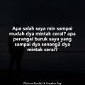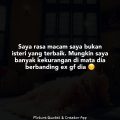 Saya pun tahu saya bukan isteri yang sempurna untuk dia tapi saya cuba jadi yang terbaik untuk dia mana yang salah sepatutnye diperbetulkan sama2 bukan ambil jalan ringkas macam ni.. Tak ada manusia yang sempurna dlm dunia ni, cari la kesempurnaan seluruh dunia ni, memang takkan pernah ada.. Saya redha dengan apa yang jadi kat saya dan anak saya sekarang ni, saya akan besarkn anak ni sendiri tanpa dia kat cc saya.. Doakan saya kuat dan doakn saya dan anak saya sentiasa dimurahkan rezeki seperti air yang mengalir, assalamualaikum