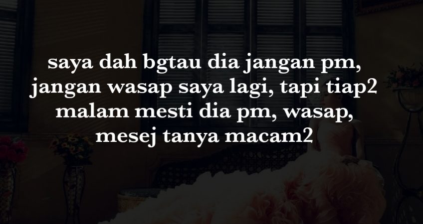 saya sangat stres sekarang ni dia selalu cakap nak datang jumpa saya tapi saya tak nak jumpa dia pun dan pernah dia datang tunggu depan ofis saya