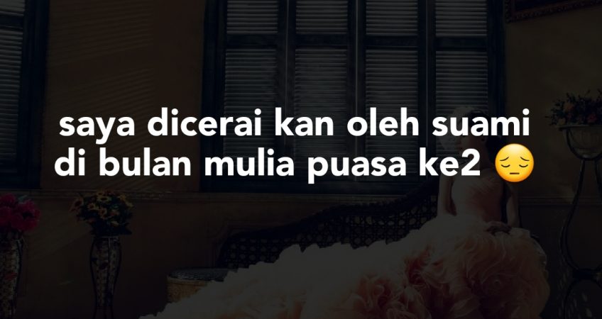 Assalam..mohon hide profile ..saya ade cter cerita kan kisah saya sblm ni di krt dan ini berlaku di bulan mulia sekarang , saya dicerai kan oleh suami di bulan mulia puasa ke2 ,selepas saya halau suami dr umah fmili saya ,kerana sakit hati suami pergi ke rumah janda buka pose bsama dengan anak2 mereka. saya tau salah bdosenya saya mhalau suami kerana terlampau marah nya bjnji untuk pulang terawih sama2 pada malam itu tetapi dia tak pulang sampai ke subuh..n berlaku slh fhm apabila saya sangka kan suami tido disitu kerana moto nya dirumah jandanya rupanya dia hanya tumpang letak sahaja. Kerana ikutkan hawa nafsu dan bersangka buruk pada suami, saya mgamuk hingga tak ingat dunia. menghalaunya