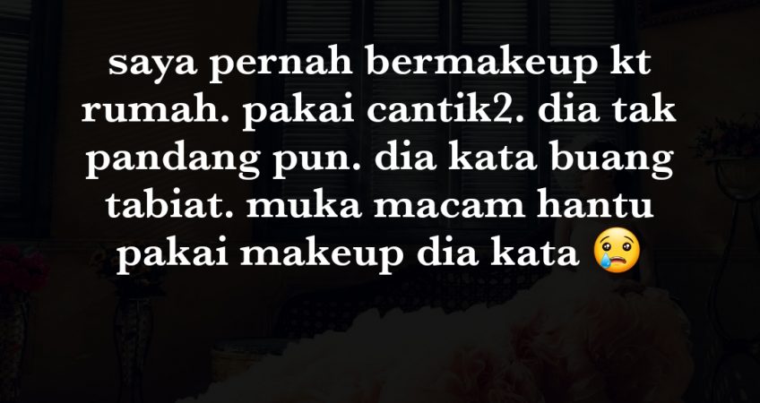 Mungkin saya ni kurang baik untuk dia. saya pernah bermakeup kt rumah. pakai cantik2. dia tak pandang pun. dia kata buang tabiat. muka macam hantu pakai makeup dia kata. saya pakai nipis2 pun sama gak. nak kata dia gaay tak juga sebab saya tgok history tu dia tgok laki pompuan. Kat mana silap saya kat sini? hati saya ni cepat lembut. Saya marah kejap je lepas tu saya lupa. saya tak belajar tinggi pun. Sampai pmr je. mungkin saya bukan perempuan idaman dia. saya asalnya bukan islam sebelum berkahwin dengan dia. Keluarga saya terima baik saya masuk islam.saya dulu hanya satu je niat agar dia boleh bimbing saya kejalan yang betul. Saya pandai solat pandai ngaji semua dia yang ajar. tapi knp dia perlahan2 tinggalkan semua tu..saya perlukan nasihat dan kata semangat..mungkin tips yang berguna.