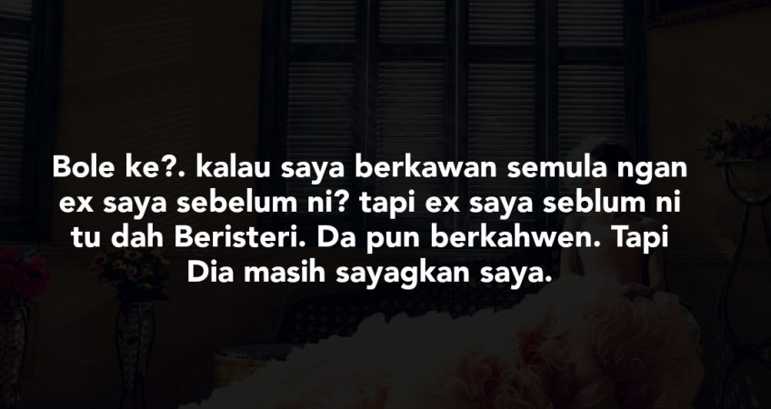 Sekarang ni sejak kami dh berpindah, saya dah mula rasa berjauhan dengannya. lagi pun dia tak ambil tahu sangat hal2 kami anak beranak. Dia anggap saya pandai uruskan semuanya seperti tggal bersama dahulu. Soalannya skgni. kalaulah betul2 dia dh takkisah sangat hal kami. Bole ke?. kalau saya berkwan semula ngan ex saya sebelum ni? tapi ex saya seblum ni tu dah Beristeri. Da pun berkahwen. Tapi Dia masih sayagkan saya. Kalaulah ada jodoh, katanya dia nak ambil saya sebgai isterinya. Maksudnya bermadu?. Malau isterinya tak setuju tu bukan masalah katanya..Terpulang pd isterinya nak pisah atau macamna. Tapi nmpknya dia masih sayagkan saya. Bolehkah Macamtu?