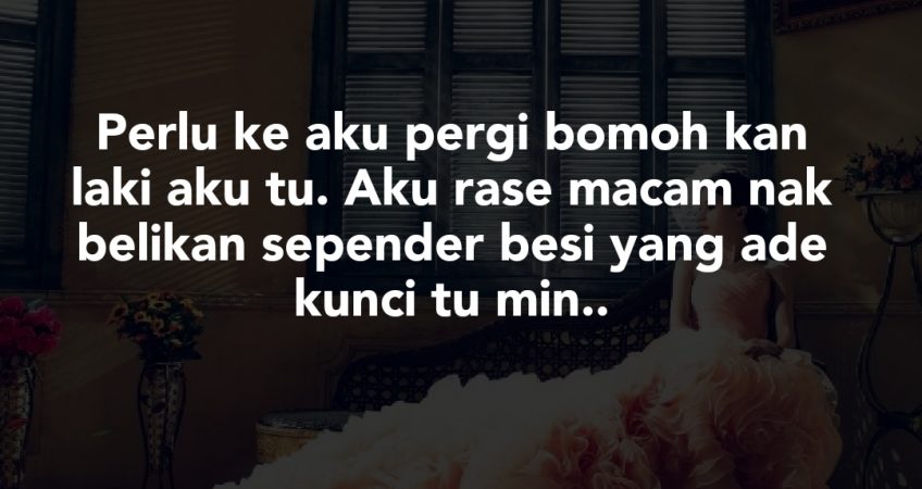 Tp bila dia kata nak outstesen sminggu aku ckp nak ikut dia marah aku.. Katanya kwn opis dia smua lelaki bt apa aku nak ikut.. Dlu pun dia outstesen boleh je aku ikut anak branak.. Korg rasa perlu tak aku risau.. Aku rase macam nak blikn sepender besi yang ade kunci tu min bodoh la lelaki ni.. Senang sikit pasang btine sana sni.. Anak bini yang setia susah senang dengan korg tak nak hargai.. Kata nak terima kasih mintak maaf pon tak pernah.. Sedih aku min.